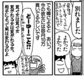 付き合う女によって、男は貢いだり貢がれたりするってのはビックリだなあ。