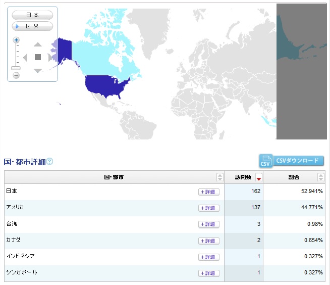 アメリカと日本からほぼ半分の割合でアクセスされててびびりーた。